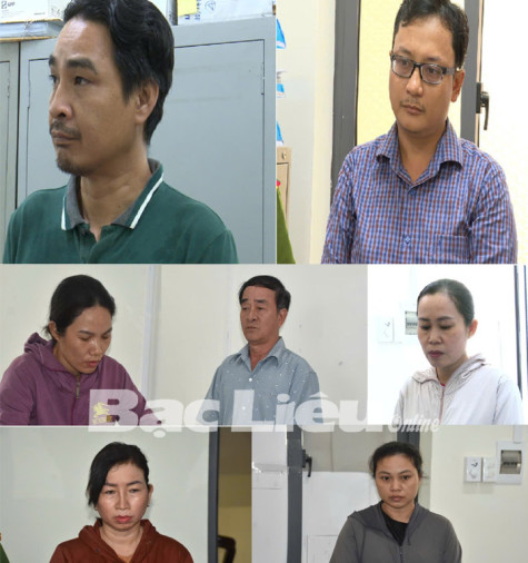 Các bị can bị khởi tố gồm: Từ Thanh Duy (42 tuổi), Võ Ngọc Đức (39 tuổi), Nguyễn Thị Thanh Thúy (54 tuổi), Nguyễn Minh Luân (64 tuổi), Mai Thị Thương (35 tuổi) cùng ngụ TP. Bạc Liêu; Nguyễn Thị Ngọc Thúy (41 tuổi, ngụ huyện Vĩnh Lợi) và Từ Thị Phương Thúy (36 tuổi, ngụ thị xã Vĩnh Châu, tỉnh Sóc Trăng).