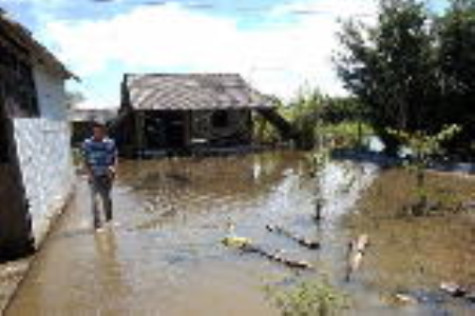 | Nhiều ngôi nhà tại Ấp 13, xã Khánh An bị ngập chìm trong nước |