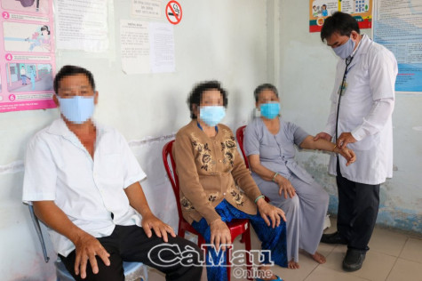 Bác sĩ Trạm Y tế xã Hưng Mỹ (huyện Cái Nước) kiểm tra lâm sàng một trường hợp bệnh nhân bị viêm da, điều trị lâu ngày nhưng vẫn chưa khỏi.