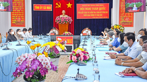 | Đồng chí Nguyễn Tiến Hải, Uỷ viên BCH Trung ương Đảng, Bí thư Tỉnh uỷ, chủ trì Hội nghị tổng kết công tác kiểm tra, giám sát năm 2021, triển khai nhiệm vụ 2022 điểm cầu tỉnh Cà Mau. |
