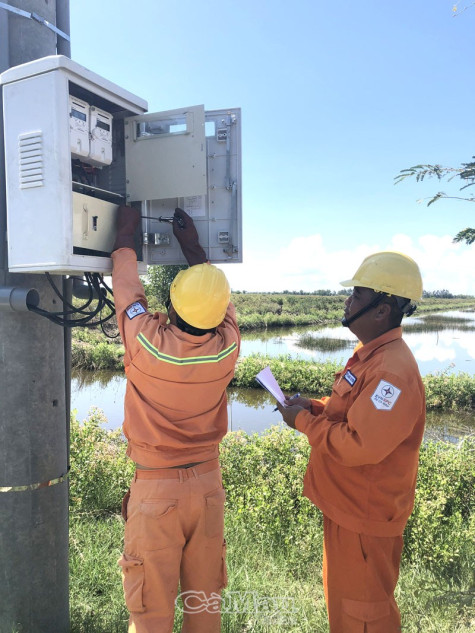 | Nhân viên điện lực Thới Bình kiểm tra chỉ số điện của khách hàng. |