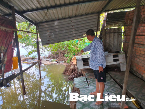 Hiện trường vụ sạt lở nhà dân ở khu vực khóm 6 (Phường 5, TP. Bạc Liêu). Ảnh: C.L