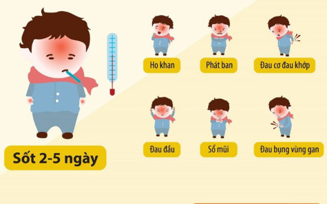 Sốt cao đột ngột từ 39 - 40 độ C, kéo dài trong vòng 4 - 7 ngày tính từ ngày sau khi bị muỗi vằn đốt. Đau đầu, đau bụng, buồn nôn, ói mửa, đau khắp các cơ.
