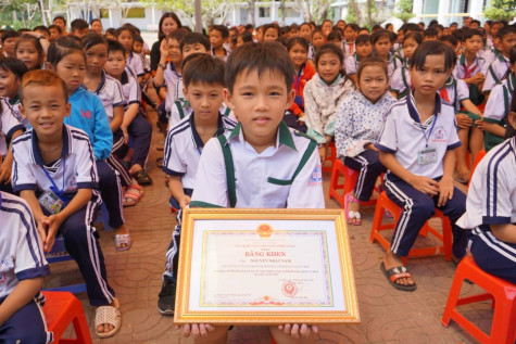 | Ngày 6/3, Phó giám đốc Sở GD&ĐT tỉnh Cà Mau Lê Thanh Liêm đến trao tặng bằng khen của Bộ trưởng Bộ GD&ĐT Phùng Xuân Nhạ cho em Nguyễn Nhựt Nam, học sinh lớp 3A, trường Tiểu học Nguyễn Thị Minh Khai, xã Khánh Lâm, huyện U Minh. Dịp này, Nam còn được nhận giấy khen của Sở GD&ĐT Cà Mau, Phòng GD&ĐT huyện U Minh, Hội đồng Đội tỉnh, Tỉnh đoàn Cà Mau và Hội đồng Đội huyện U Minh vì hành động cao đẹp nhặt được của rơi trả lại cho người mất. Huy Toàn |