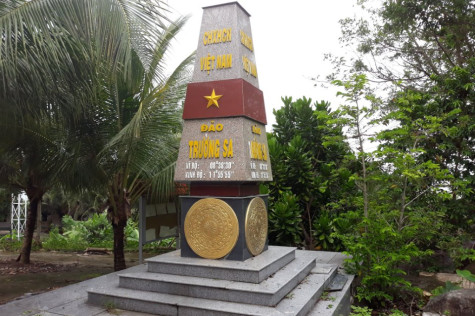 | Phiên bản cột mốc chủ quyền đảo Trường Sa trên Hòn Me. |