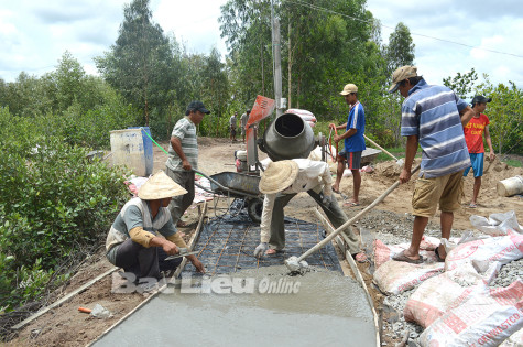 Xây dựng lộ giao thông nông thôn ấp liền ấp theo phương châm “Nhà nước và Nhân dân cùng làm” ở huyện Đông Hải (ảnh chụp trước thời điểm xảy ra dịch COVID-19). Ảnh: T.A