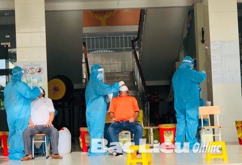 Nhân viên y tế lấy mẫu xét nghiệm tầm soát trong cộng đồng tại Khóm 1 (Phường 7, TP. Bạc Liêu). Ảnh: H.L