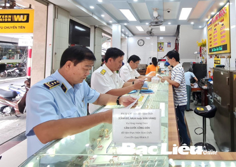 (BL-TQ) Ngày 20/6, Đoàn kiểm tra liên ngành 389 tỉnh tổ chức kiểm tra các đại lý chi, trả ngoại tệ; sản xuất - kinh doanh (SX-KD) vàng trang sức, mỹ nghệ của các doanh nghiệp (DN) trên địa bàn tỉnh.