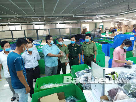 Đoàn công tác kiểm tra tại Nhà máy may Pinetree (xã Châu Hưng A, huyện Vĩnh Lợi). Ảnh: N.Q