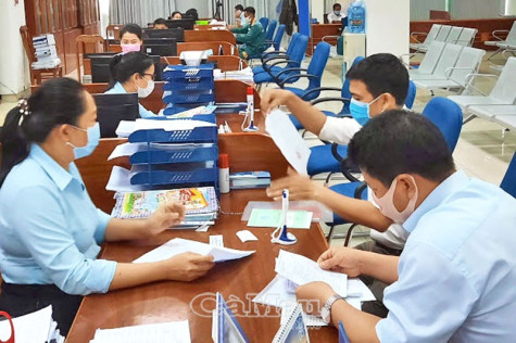 | Nhân viên BHXH tỉnh Cà Mau tiếp nhận hồ sơ, thủ tục về BHXH tại Trung tâm Giải quyết TTHC tỉnh. |