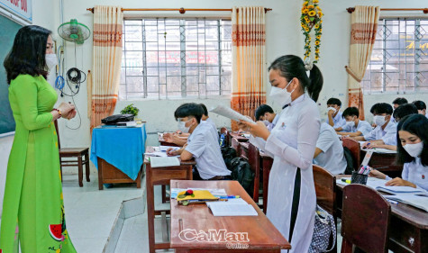 Linh hoạt thay đổi phương án, nhưng dù học trực tiếp hay trực tuyến các trường vẫn đảm bảo nội dung và tiến độ chương trình năm học. (Ảnh chụp tại Trường THPT Cà Mau). |
