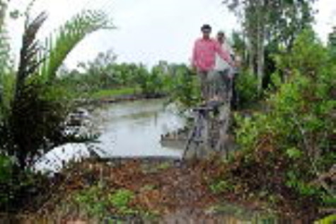 | Người dân kinh Chuối Nước đi lại trên những chiếc cầu tạm bợ. |