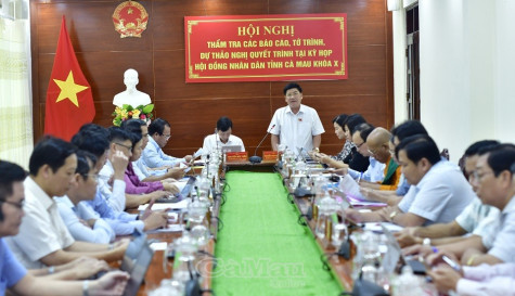 | Ông Nguyễn Phương Đông, Trưởng ban Văn hoá - Xã hội HĐND tỉnh Cà Mau, chủ trì Hội nghị thẩm tra Báo cáo tình hình thực hiện Nghị quyết HĐND tỉnh về Kế hoạch phát triển kinh tế - xã hội 6 tháng đầu năm và phương hướng, nhiệm vụ 6 tháng cuối năm 2023. |