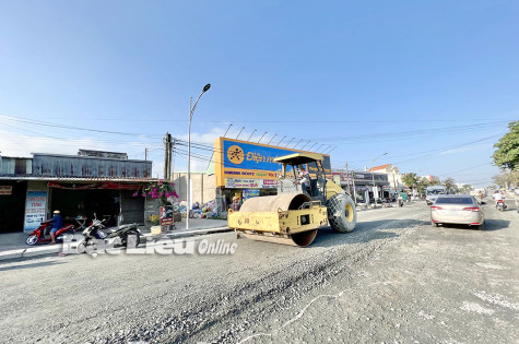 TX. Giá Rai đẩy nhanh tiến độ thi công nâng cấp đường giao thông để phục vụ phát triển KT-XH địa phương. Ảnh: P.A