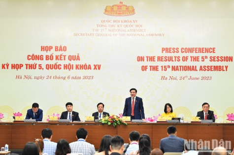 Sau khi Quốc hội họp phiên bế mạc Kỳ họp thứ 5 chiều 24/6, Tổng Thư ký Quốc hội đã chủ trì họp báo công bố kết quả Kỳ họp thứ 5, Quốc hội khóa XV.