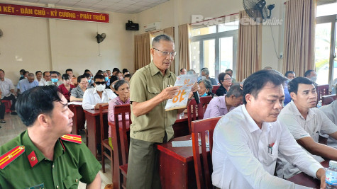 Cử tri huyện Đông Hải nêu kiến nghị tại buổi tiếp xúc cử tri trước kỳ họp giữa năm 2023 của HĐND huyện Đông Hải. Ảnh: T.T