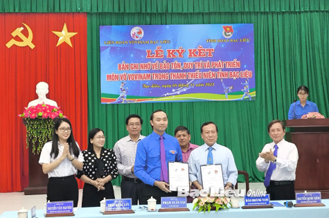Tỉnh đoàn và Liên đoàn Vovinam tỉnh ký kết bản ghi nhớ về bảo tồn, duy trì và phát triển môn võ Vovinam trong thanh thiếu niên tỉnh Bạc Liêu.