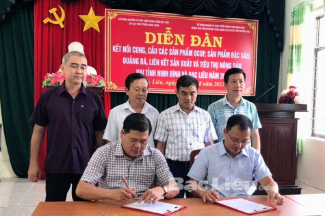 Tại diễn đàn, Chi cục Phát triển nông thôn Bạc Liêu và Trung tâm Nông nghiệp công nghệ cao và xúc tiến thương mại (thuộc Sở NN&PTNT tỉnh Ninh Bình) tiến hành ký kết hợp tác trong việc liên kết quảng bá và tiêu thụ các sản phẩm OCOP giữa 2 tỉnh. Dịp này, đoàn Trung tâm Nông nghiệp công nghệ cao và xúc tiến thương mại, Chi cục Phát triển nông thôn tỉnh Ninh Bình đã đến tham quan một số cơ sở sản xuất sản phẩm OCOP ở huyện Vĩnh Lợi và tham quan các điểm trưng bày, mua bán sản phẩm OCOP trên địa bàn tỉnh.