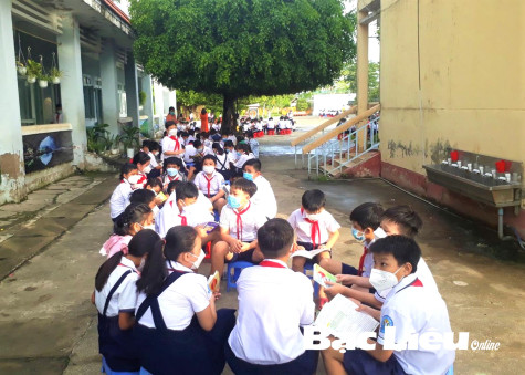 Liên đội Trường tiểu học Ngan Dừa (huyện Hồng Dân) hưởng ứng tuần 1 cao điểm thi đua phong trào “Nghìn việc tốt” với góc đọc sách mở. Ảnh: Đ.K.C