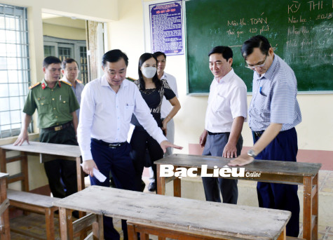 Cụ thể, trong ngày 13/6/2023, đoàn đã đến kiểm tra tại điểm thi số 13 đặt tại Trường THPT Trần Văn Bảy (xã Phước Long, huyện Phước Long), điểm thi số 14 đặt tại Trường THPT Võ Văn Kiệt (thị trấn Phước Long, huyện Phước Long), điểm thi số 15 đặt tại Trường THPT Ninh Quới (xã Ninh Quới, huyện Hồng Dân), điểm thi số 16 đặt tại Trường THPT Ngan Dừa (thị trấn Ngan Dừa, huyện Hồng Dân). Trong kỳ thi năm nay toàn huyện Phước Long có 775 TS. Trong đó, điểm thi số 13 đặt tại Trường THPT Trần Văn Bảy (xã Phước Long) có 272 TS (206 TS đăng ký dự thi tổ hợp Khoa học Xã hội, 66 TS đăng ký dự thi tổ hợp Khoa học Tự nhiên). Với số lượng TS như trên, trường bố trí 20 phòng phục vụ kỳ thi. Trong đó có 12 phòng thi chính thức, 2 phòng thi dự phòng, 2 phòng thi dành cho các trường hợp TS là F0 (nếu có)…