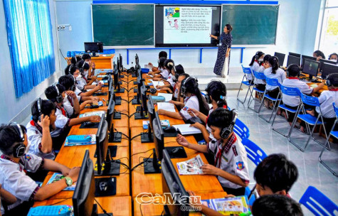 | Tăng cường đầu tư xây dựng cơ sở vật chất, thiết bị trường học đáp ứng nhu cầu đổi mới giáo dục được huyện Thới Bình xác định là nhiệm vụ quan trọng. (Trong ảnh: Tiết học Lịch sử của cô trò trường THCS thị trấn Thới Bình). |