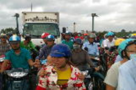 | Người tham gia giao thông kẹt cứng trên cầu hàng tiếng đồng hồ. |