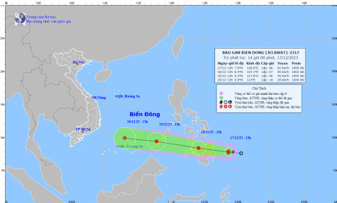 Theo Trung tâm dự báo Khí tượng, Thủy văn quốc gia, hiện nay (17/12), một cơn bão có tên quốc tế là JELAWAT đang hoạt động ở vùng biển phía Đông Nam miền Nam Philippines.