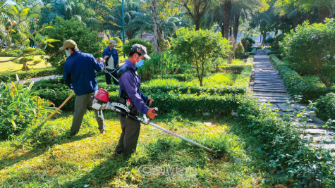 | Chăm sóc cây xanh chuẩn bị đón Tết tại Công viên Hùng Vương. |