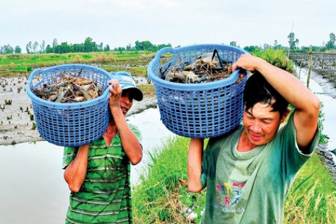 | Nuôi tôm càng xanh kết hợp vụ lúa và vụ tôm sú cho thu nhập ổn định cả 3 đối tượng này. |
