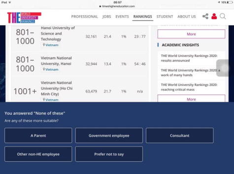 Thời báo Giáo dục đại học (Times Higher Education, THE) vừa công bố kết quả xếp hạng đại học thế giới mới nhất (World University Rankings 2020) tại Hội nghị Thượng đỉnh về học thuật của THE tổ chức tại Zurich (Thuỵ Sỹ). Theo đó, lần đầu tiên 3 đại học của Việt Nam được THE công bố thứ hạng cùng với gần 1.400 cơ sở giáo dục đại học hàng đầu thế giới.