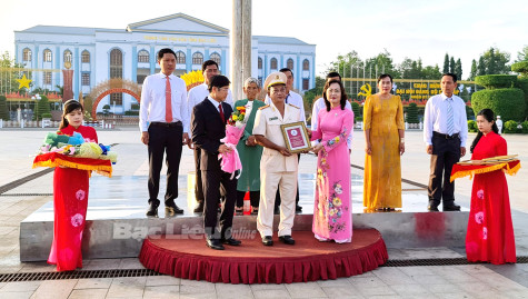 Hoạt động chào cờ hàng tháng tại Quảng trường Hùng Vương và tuyên dương các gương điển hình tiêu biểu định kỳ mỗi quý một lần ở Bạc Liêu. Ảnh: M.Đ