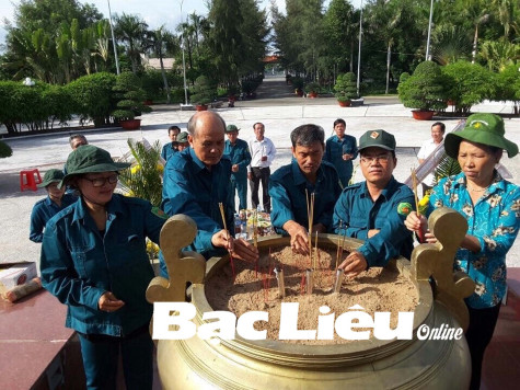 Các thành viên CLB thắp nhang trước khi dọn vệ sinh Nghĩa trang liệt sĩ tỉnh (ảnh chụp trước thời điểm dịch COVID-19 lần thứ 4 bùng phát).