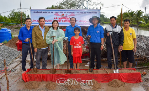 Huyện đoàn Phú Tân khởi công ngôi nhà Khăn quàng đỏ cho em Thái Văn Dương.