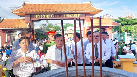 Trong không khí trang nghiêm, thành kính trước anh linh các anh hùng liệt sĩ, các đại biểu dành phút mặc niệm tưởng nhớ các anh hùng đã hy sinh xương máu vì nền độc lập tự do của dân tộc. Sau phần nghi thức, cán bộ và lãnh đạo của 2 huyện đã thắp hương từng ngôi mộ các anh hùng liệt sĩ, thể hiện lòng tri ân sâu sắc đối với thế hệ cha anh đã cống hiến cả cuộc đời để giành lại độc lập tự do cho dân tộc, mang lại cuộc sống ấm no và hạnh phúc cho nhân dân cả nước nói chung và 2 huyện Hòa Bình - Vĩnh Lợi, tỉnh Bạc Liêu nói riêng.