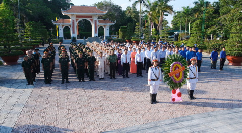 Các đồng chí lãnh đạo tỉnh, nguyên lãnh đạo tỉnh cùng đông đảo cán bộ, đoàn viên, lực lượng vũ trang trang trọng dâng hoa, dâng hương tại Khu tưởng niệm Chủ tịch Hồ Chí Minh.