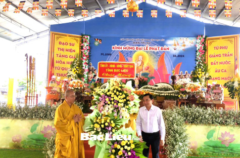 Sáng 21/5, lãnh đạo Tỉnh ủy, HĐND, UBND, Ủy ban Mặt trận Tổ quốc Việt Nam tỉnh đã đến dự Đại lễ Phật đản do Ban Trị sự Giáo hội Phật giáo (GHPG) Việt Nam tỉnh tổ chức tại chùa Long Phước (TP. Bạc Liêu).
