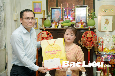 * Cũng nhân dịp này, đoàn cán bộ UBND TP. Bạc Liêu do bà Đỗ Ái Lam - Phó Chủ tịch UBND thành phố làm trưởng đoàn đã đến thăm, tặng quà gia đình các đồng chí tham gia giải phóng Bạc Liêu năm 1975.