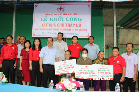 Kinh phí hỗ trợ sinh kế, cất nhà CTĐ do Cụm thi đua Hội CTĐ các tỉnh miền Tây Nam bộ tài trợ.