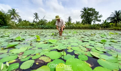 “Ngày nào nhổ ngày đó. Gần đây tôi mới cải tạo lại, nhổ sen già, cằn cỗi bỏ, trồng lại để lên sen mới tốt hơn nên cách 1 ngày nhổ, từ 10-30 kg, bình quân mỗi ngày được vài trăm ngàn đồng. Giá ngó sen 30.000 đồng/kg, thu hoạch quanh năm. Trồng sen hiệu quả cao hơn nhiều so với trồng lúa, chỉ tốn công thôi, chứ phân thuốc, chi phí sản xuất ít. Ở đây thì tiêu thụ hơi chậm, chủ yếu là ở TP Cà Mau”, bà Ánh cho biết.