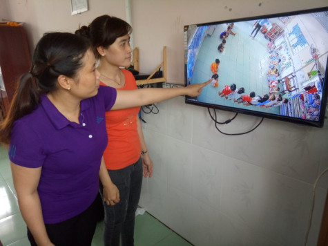 Hệ thống camera của trường gồm 13 mắt, với tổng kinh phí 23,5 triệu đồng, do các bậc phụ huynh đóng góp, được lắp đặt ở các phòng học và khuôn viên nhà trường. Tuy mới được triển khai nhưng bước đầu đã mang lại hiệu quả nhất định. Qua hệ thống camera, tín hiệu được truyền tải trực tiếp tới Ban Giám hiệu nhà trường thông qua máy vi tính và phần mềm trên điện thoại di động. Chỉ cần có kết nối internet, Ban Giám hiệu nhà trường có thể theo dõi, quản lý việc dạy học và chăm sóc trẻ của giáo viên mọi lúc, mọi nơi.