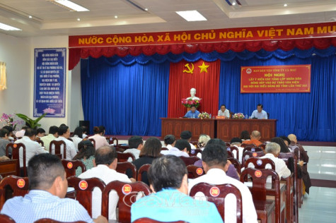 | Ban Dân vận Tỉnh uỷ chủ trì hội nghị lấy ý kiến đóng góp của các tầng lớp Nhân dân vào Dự thảo văn kiện Đại hội khoá mới. |