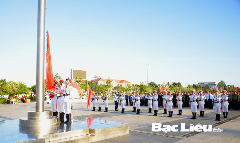 Sáng 5/8, tại Quảng trường Hùng Vương (TP. Bạc Liêu), Tỉnh ủy, HĐND, UBND, Ủy ban MTTQ Việt Nam tỉnh trang trọng tổ lễ chào cờ đầu tháng 8/2024.
