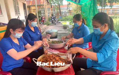 Đoàn viên - thanh niên huyện Hồng Dân chuẩn bị các suất cơm hỗ trợ các chốt phòng, chống dịch COVID-19 trên địa bàn.
