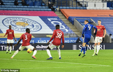 Tuy vậy, một lần nữa đội khách không thể duy trì được niềm vui quá lâu. Chỉ 6 phút sau bàn thua thứ hai, Leicester cũng có được bàn gỡ. Đó là tình huống Vardy dứt điểm cực nhanh, bóng chạm chân Tuanzebe đổi hướng, bay thẳng vào lưới, ấn định trận hòa 2 – 2 cho đội bóng áo xanh.