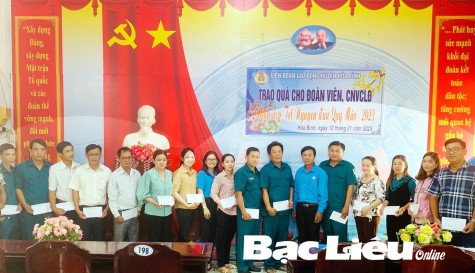 LĐLĐ huyện Hòa Bình tổ chức trao quà cho đoàn viên, người lao động nhân dịp tết Nguyên đán 2023. Ảnh: T.T