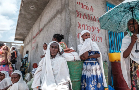 Người dân chờ được phát thực phẩm cứu trợ tại làng Baker, vùng Tigray, Ethiopia. Ảnh: AFP/TTXVN