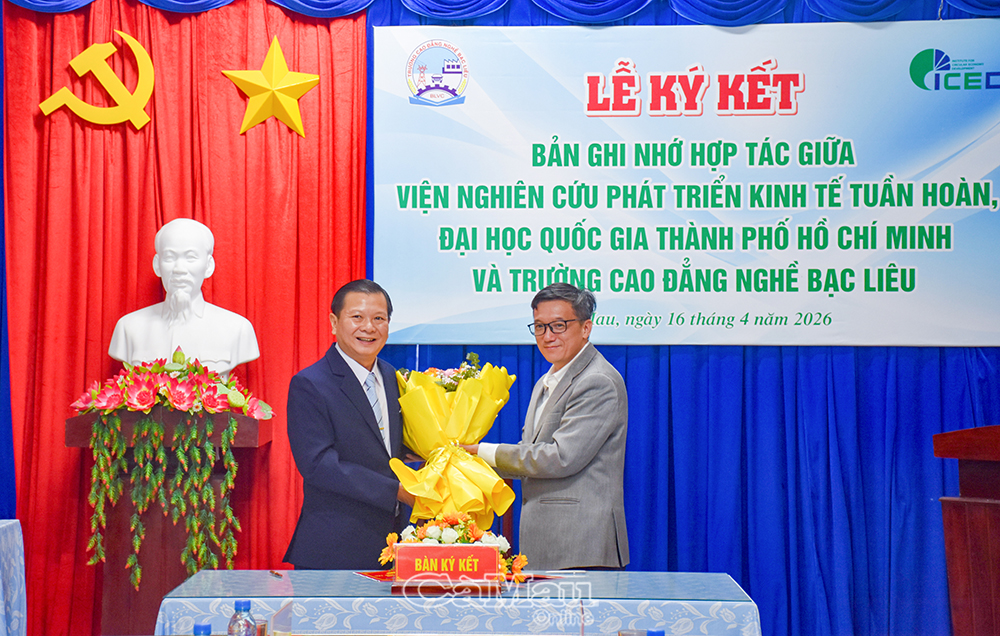 Báo Cà Mau Trường Cao đẳng Nghề Bạc Liêu (tỉnh Cà Mau) và Viện Nghiên cứu phát triển kinh tế tuần hoàn (Đại học Quốc gia Thành phố Hồ Chí Minh) sẽ hợp tác trong đào tạo nguồn nhân lực, nghiên cứu khoa học và phát triển hệ sinh thái kinh tế xanh, kinh tế tuần hoàn.