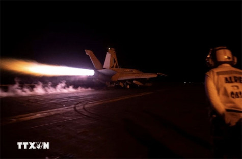 Các lực lượng Mỹ và Anh tấn công hàng chục mục tiêu của Houthi ở Yemen ngày 3-2-2024. Ảnh: TTXVN