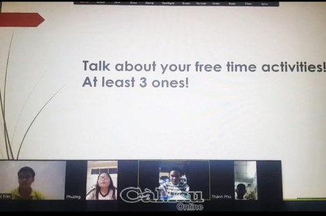 Lớp học trực tuyến tiếng Anh của thầy Trần Quốc Khái, Trường THCS-THPT Khánh An, huyện U Minh được tổ chức theo khung giờ cố định. |