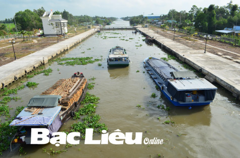 Vận hành cống Âu thuyền Ninh Quới giúp kiểm soát mặn, ngọt phục vụ sản xuất. Ảnh: C.L